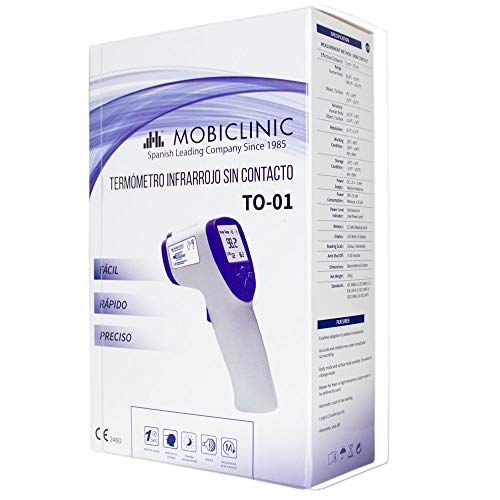 Mobiclinic, Termometro digitale, TO-01, Marchio Europeo, Sensore a Infrarossi, Marcatura CE, Allarme Febbre, Lettura Digitale, LCD Display, colore Blu