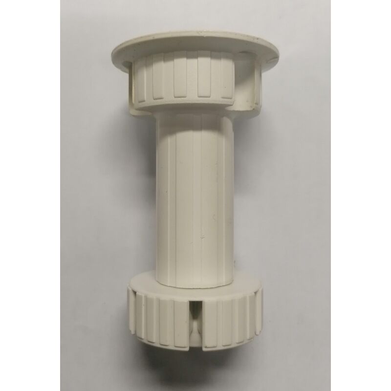 MOBILA - PIEDINO REGOLABILE IN ABS BIANCO DIAM. 28 H100 MM Piede tondo regolabile per mobili, realizzato in plastica. Diametro 28 mm, Altezza 100 mm. Piastra/attacco per il montaggio sul mobile integrata.
