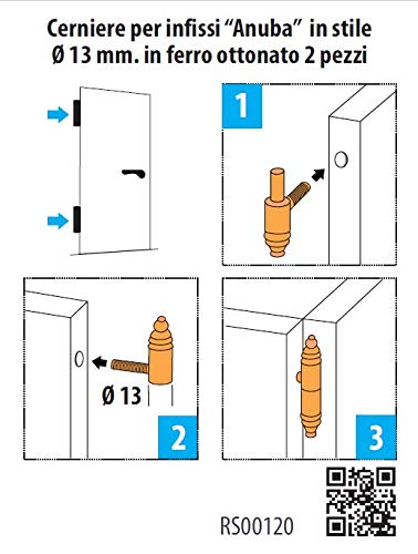 Mobila RS00120 Cerniere per infissi Anuba in Stile, Ferro ottonato, Ø 13 mm, 2 Pezzi, Ottone, 2 unità