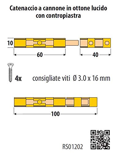 Mobila RS01202 - Catenaccio a cannone con contropiastra, ottone lucido, 100 mm.