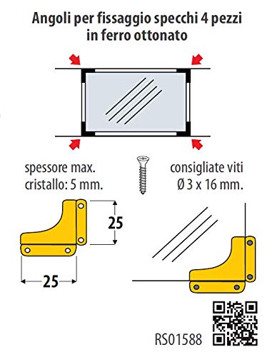 Mobila RS01588 Angoli per Fissaggio specchi, in Ferro ottonato, 4 Pezzi, Ottone, 4 unità