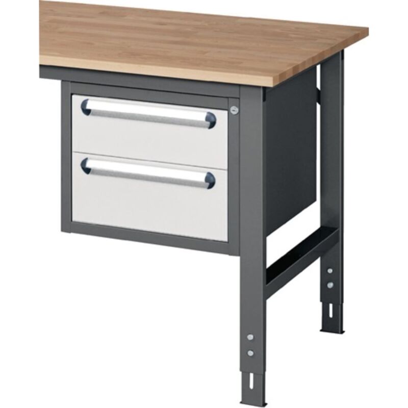 Montaggio diretto sul piano del tavolo mediante adattatore di montaggio · 2 sottostruttura - contenitori per forno di lavoro · Lamiera d'acciaio verniciata a polvere, alloggiamento antracite metallica simile a RAL7016, grigio chiaro anteriore, RAL 7035 · Cassetti 90% estensibili, capacità di carico per cassetto 35 kg · Dimensioni interne del cassetto W 390 x D 560 mm · Barra maniglia con striscia di etichette · Serratura centrale con 2 tasti Altre caratteristiche tecniche: · Versione: Estratto singolo · Numero di cassetti: 2 · adatto per: tavolo da lavoro · Numero di cassetti x altezza: 1 x 150, 1 x 180 mm