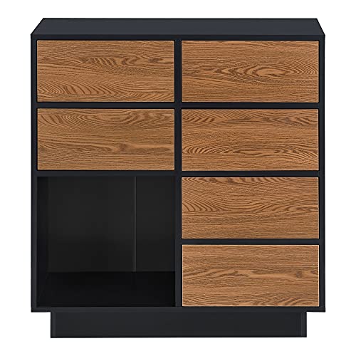 En.casa - Mobile per Soggiorno/Ingresso/Ufficio con 6 Armadietti e 1 Scomparto Aperto, Comò 88x80x30cm (AxLaxP) Mobile a Terra con Ante Apertura a Pressione Push-to-Open - Nero/Effetto Legno