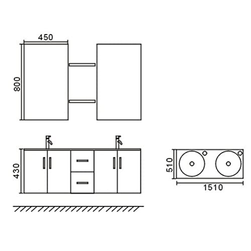 Mobile Bagno 151 cm Arredo bagno Bianco Doppio Lavabo Incluso - Gracie
