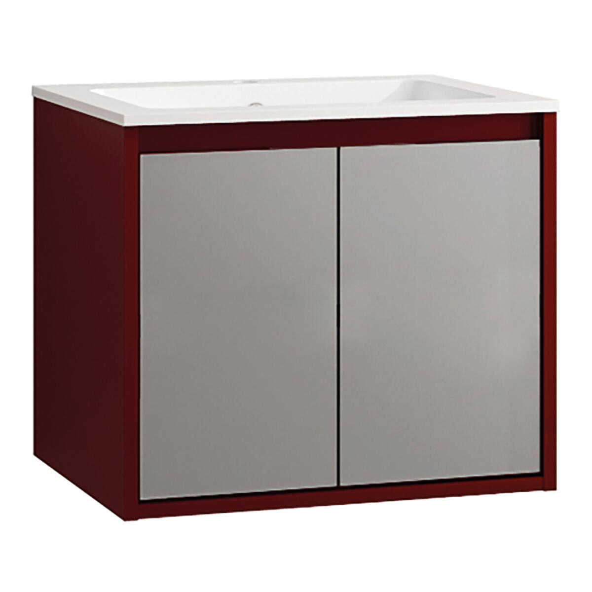 Base portalavabo Loto laccato lucido rosso con 2 ante e frontali in vetro L.59,5 H.50 P.45,5 cm