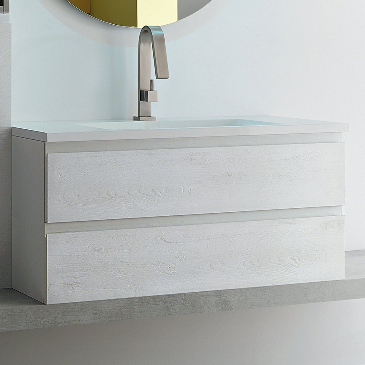 In laminato grigio chiaro opaco, 2 ante, 2 cassetti, chiusura rallentata