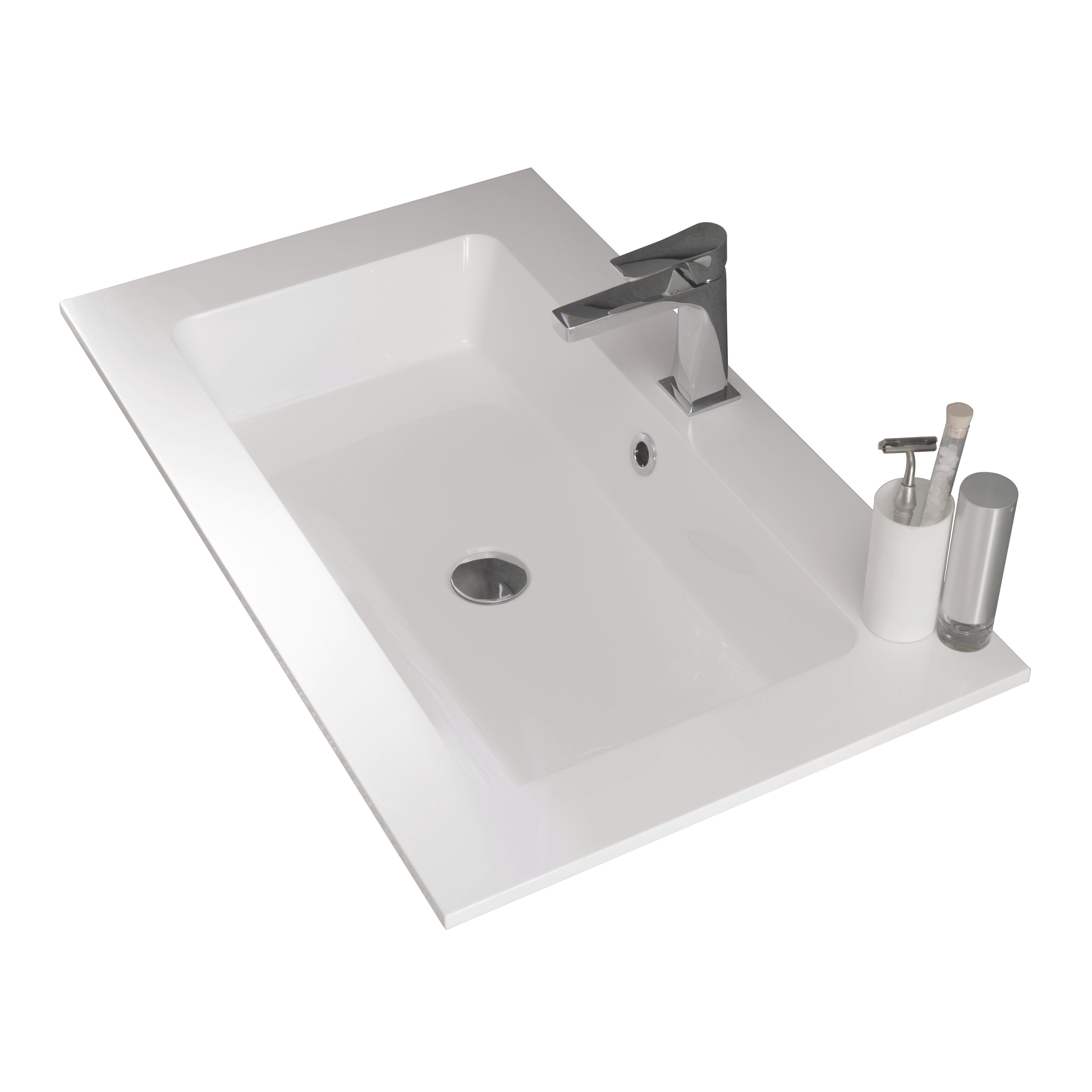 Lavabo integrale in mineralmarmo bianco da L.75 H.12,5 P.46 cm