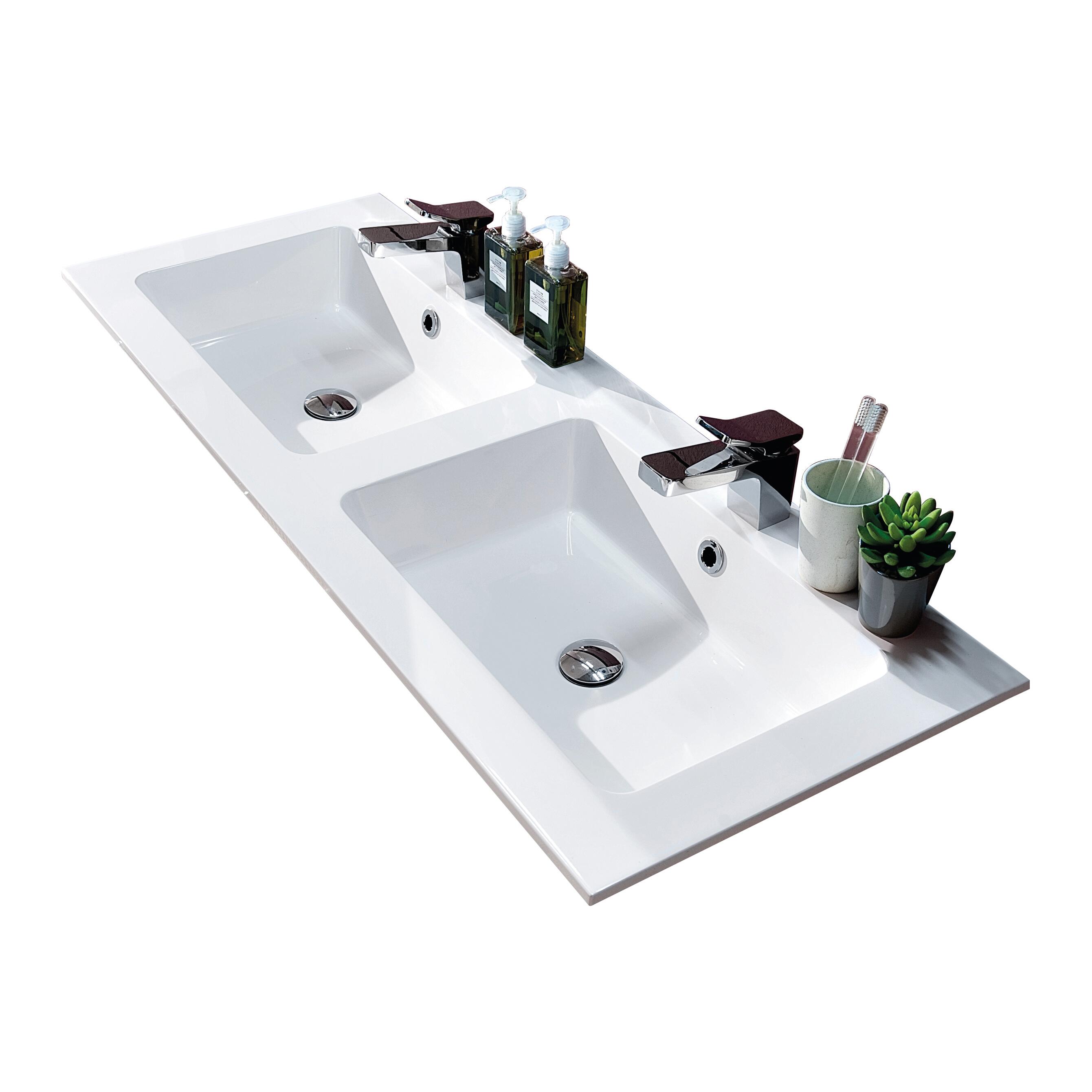 Lavabo integrale doppiavasca in mineralmarmo bianco da L.120 H.12,5 P.46 cm