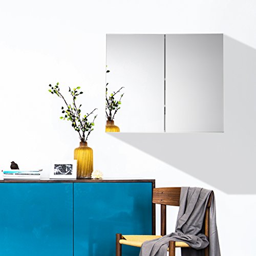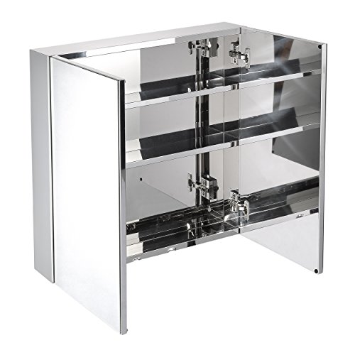 Mari Home Mobile da Bagno a Parete con Specchio - Mobiletto in Acciaio Inox ad Angolo - Specchiera a Muro Salvaspazio - Armadietto con Spazio Ampio, 3 Scaffali, 2 Ante - Arredo Bagno - 600x120x550 mm