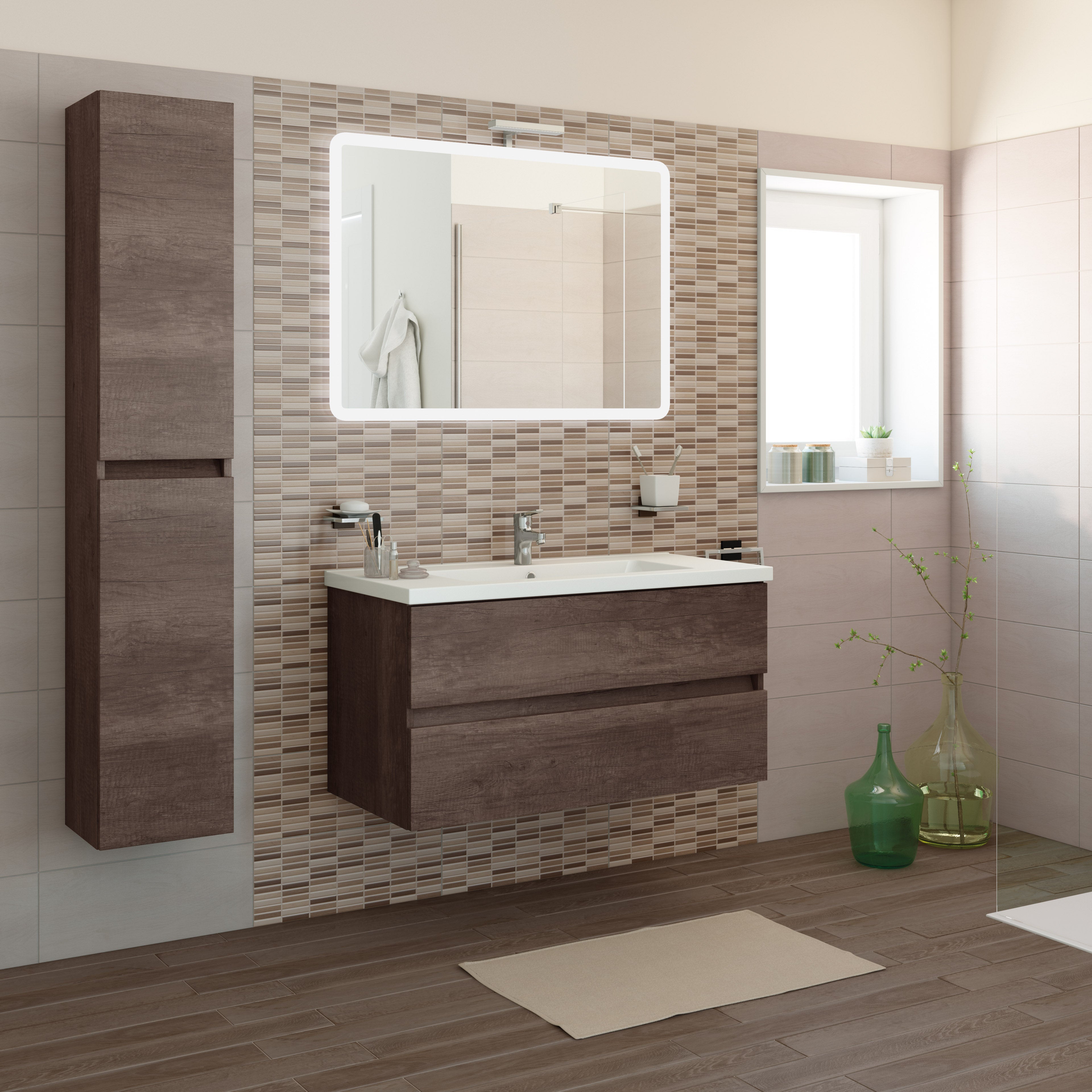 Mobile bagno Kora rovere scuro L 101 cm;