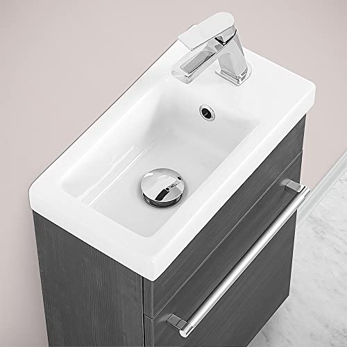 Mobile Bagno sospeso salvaspazio Compatto, L.40 x P.22.5 x H. 55.6 cm, Vasca Reversibile, Completo di lavabo in Ceramica Specchio e mensola (Rovere Scuro)