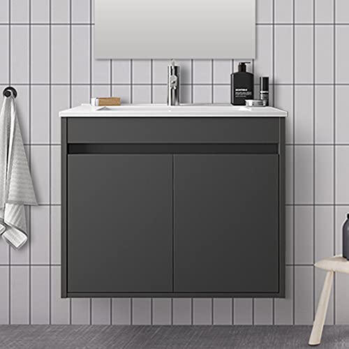 Mobile Bagno sospeso 70 cm, Serie Mavi 2 Ante, arredo Bagno Moderno Completo di lavabo e Specchio (Grigio Grafite)