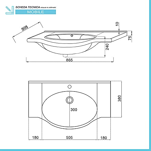 Lavabo: in ceramica bianco lucido è completo sia del foro per il troppo pieno che per il miscelatore. NON include la rubinetteria, piletta e sifone di scarico acquistabile separatamente. CONTATTACI per conoscere i prodotti compatibili per completare il tuo mobile bagno