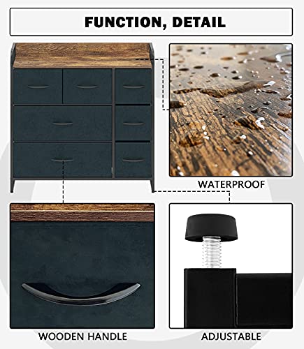 Mobile con 7 Cassetti in Stoffa Como Cassettiera Grande Moderno Armadietto Salvaspazio Cassettiera Armadio Comò e Comodini per Camera da Letto Cucina Ingresso Soggiorno Legno + Acciaio Nero + Grigio
