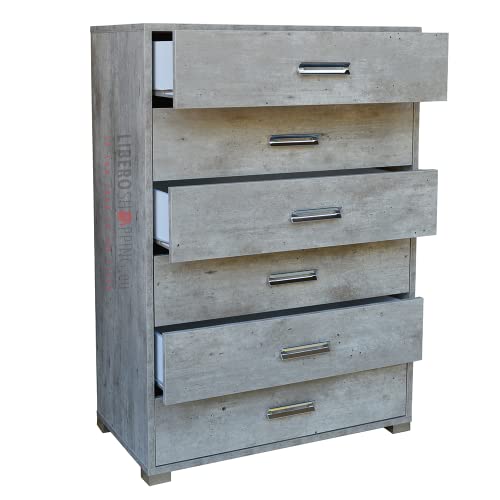 Mobile cassettiera in legno 6 cassetti Grande cm 81x44x118H (Cemento)