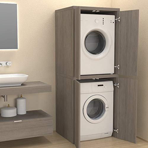 Ve.Ca. Mobile colonna con ante Coprilavatrice in legno, copri lavatrice/asciugatrice, diversi colori, anche su misura, lavanderia bagno (Rovere grigio)