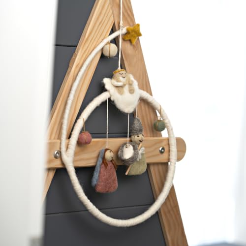 Én Gry & Sif Baby Mobile in feltro, fatta a mano, commercio equo e solidale, decorazione per la cameretta dei bambini, da appendere alla parete, Krippenspiel, Presepe