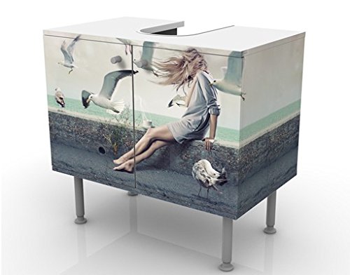 Mobile per lavabo design Coffee At The Seaside 60x55x35cm, basso, Larghezza: 60cm, regolabile, mobiletto da lavandino, lavandino, mobiletto da lavabo, lavabo, mobiletto, bagno, bagnetto, mobile da bagno