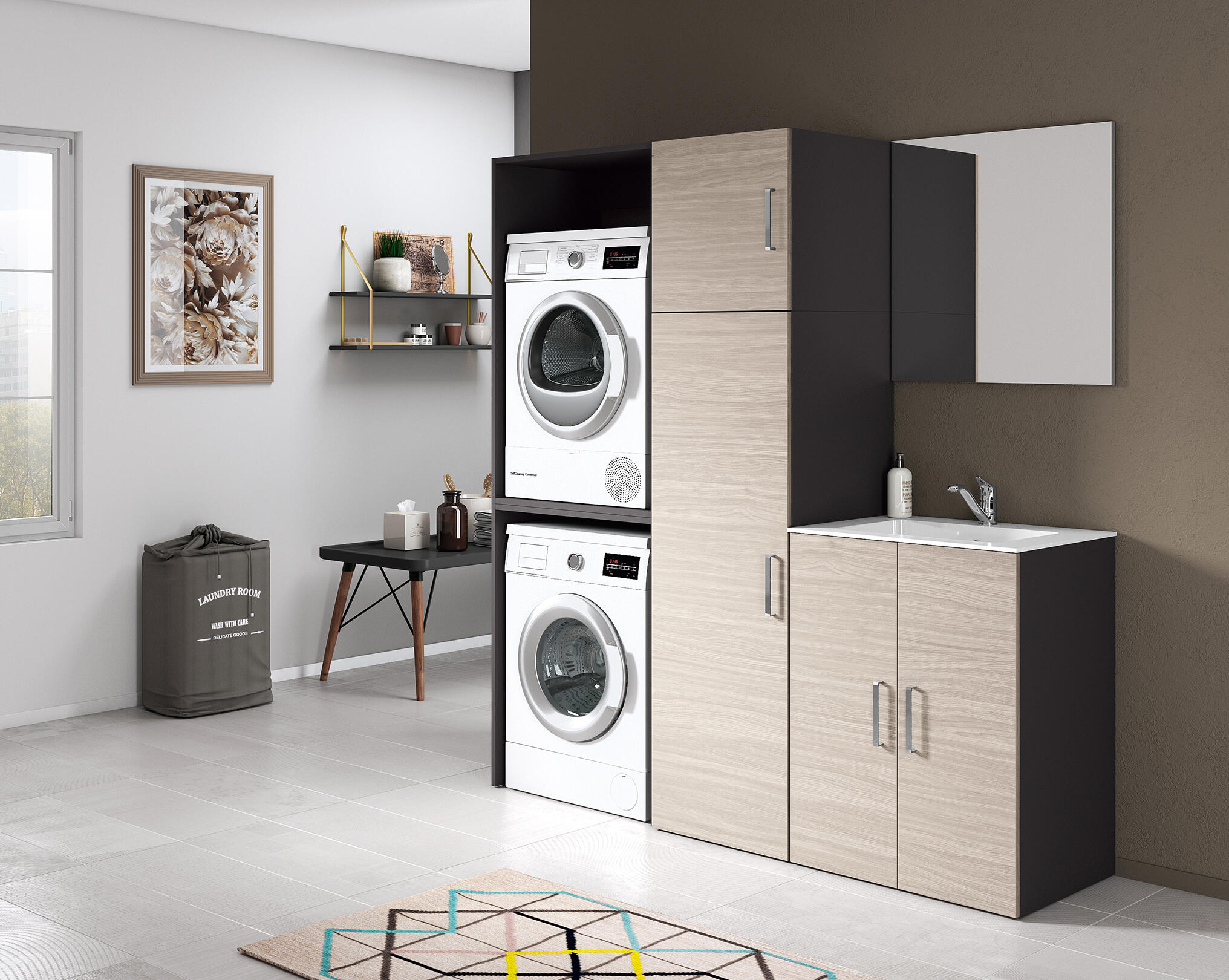 Modulo porta lavatrice DESI grigio ombra L70H90P49. Ampio spazio per contenere lavatrice e scarichi. Mobile in kit. Packaging ridotto.