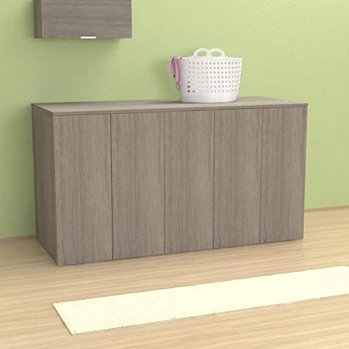 Ve.Ca. Mobile lavanderia con ante Riga 175 cm in legno, copri lavatrice/asciugatrice, diversi colori, anche su misura, bagno (Rovere grigio)