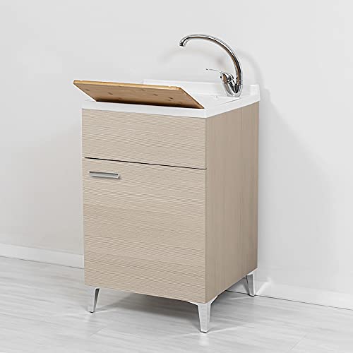 Mobile lavatoio da interno con anta reversibile e vasca lavapanni in resina, COMPLETO di asse lavatoio in bambù e kit di scarico - Perfetto come soluzione per ultimare il proprio angolo lavanderia