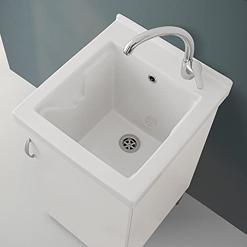 Mobile lavatoio Lavanderia in Legno con Vasca in Ceramica Resistente agli acidi, Completo di Kit sifone + piletta (Bianco, 45x50 cm 1 Anta)