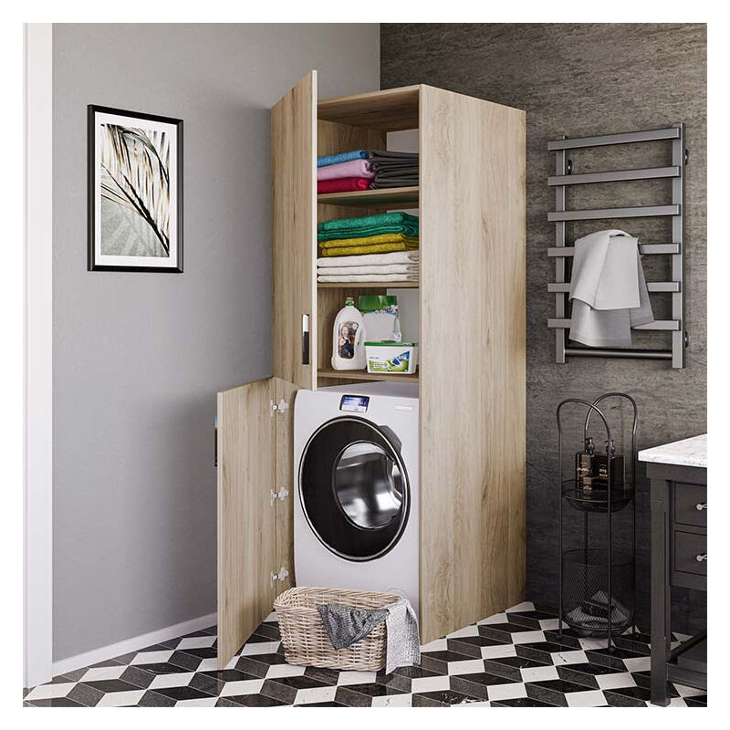 Mobile lavatrice 2 ante e ripiani 70x190cm rovere Wash Il Mobile lavatrice 2 ante e ripiani 70x190cm rovere Wash è la soluzione perfetta per chi è alla ricerca di un complemento d'arredo funzionale e moderno . Caratterizzato da un ampio scomparto dove riporre la lavatrice, Wash dispone di ulteriori tre ripiani, perfetti per posizionare la biancheria ed i detersivi. Grazie alle sue dimensioni, questa mobile è perfetto per essere inserito anche in spazi più ridotti . Le sue linee semplici e pulite, lo rendono adatto per essere collocato in diverse tipologie d'arredo . Scegli il Mobile lavatrice Wash, e dona alla tua casa l'aspetto che hai sempre sognato! CARATTERISTICHE MOBILE LAVATRICE WASH: dimensioni: L.70 x P.70 x H.191 cm spessore pannelli: 16 mm finitura: rovere materiale: nobilitato e MDF sistema di chiusura delle ante soft closing montaggio ante reversibile sia a destra che a sinistra CURA MOBILE LAVATRICE WASH: Spolverare con un panno di cotone o lino. Si raccomanda di non