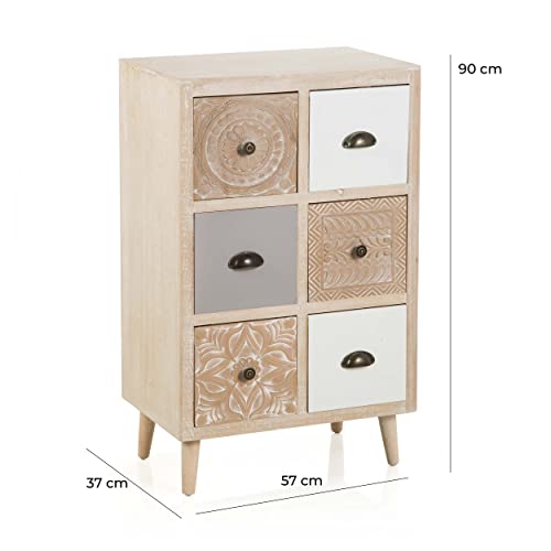 Mobile in Legno a 6 cassetti Quadrati Linea Damasco 57x37x90cm Variante Unica