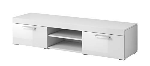 Mobile TV Mambo con supporto, 160 cm, colore: bianco opaco/bianco lucido