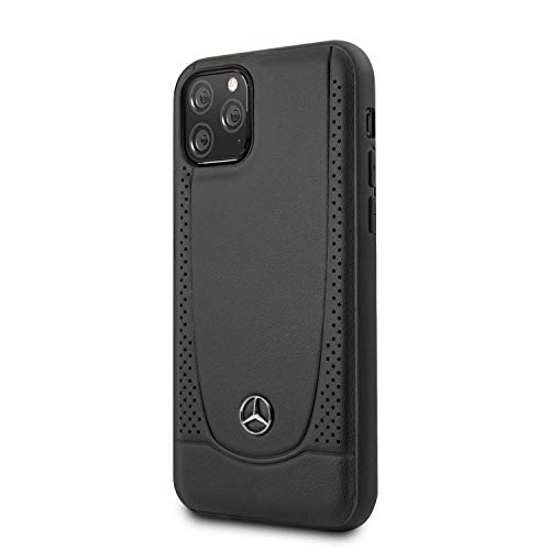 CG MOBILE Mercedes-Benz - Custodia in vera pelle per iPhone 11 Pro Max, con perforazioni e logo Mercedes Benz, colore: Nero