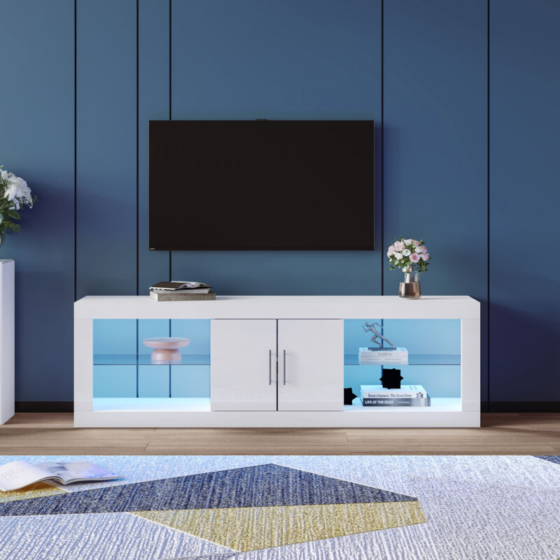 ogni stanza. Il suo design minimalista si adatta a qualsiasi stanza. adatto a tutti gli stili di arredamento, rendendolo un'aggiunta versatile ai mobili della tua casa. Una caratteristica distintiva di questo porta TV è il sistema di illuminazione a LED integrato con cornice, disponibile in 16 colori diversi. Che tu stia guardando un film con gli amici o rilassandoti