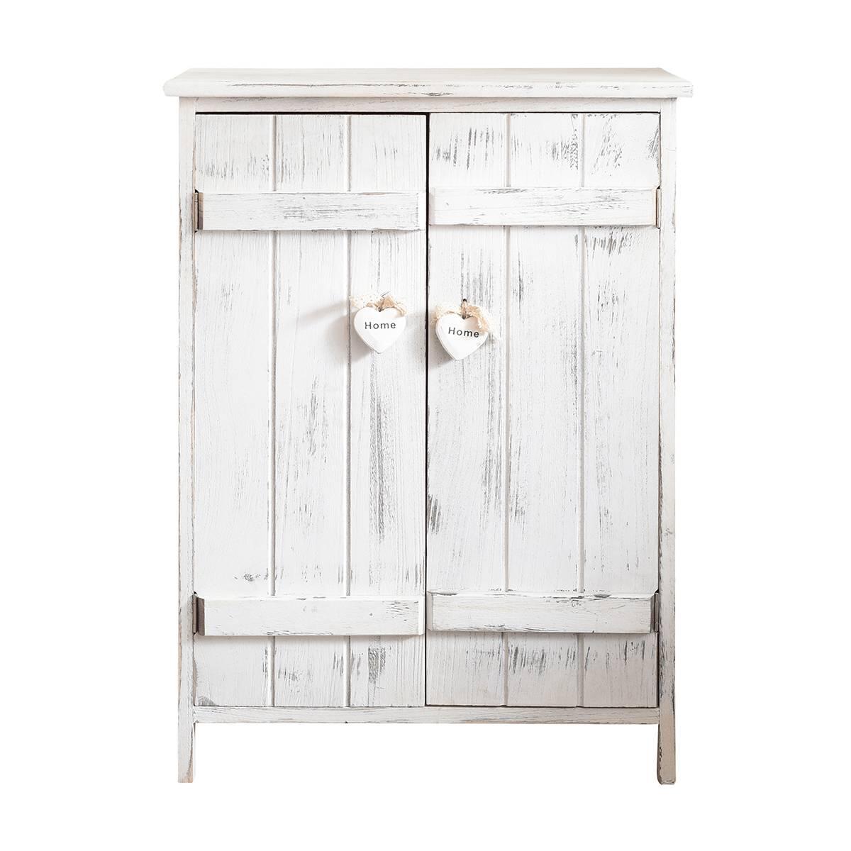 In legno. Grazioso comodino shabby in legno di paulownia con anta e 3 ripiani interni, si adatta perfettamente a ogni ambiente della vostra casa partendo dalla camera fino al bagno. Il suo colore vintage dara' alla vostra casa un tocco sicuramente originale. Le imperfezioni della verniciatura sono una caratteristica dell'oggetto.