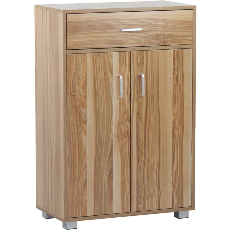 Completa l'arredo interni con il mobile multiuso We Home in legno! Il mobiletto multiuso con 2 ante a battente e 1 cassetto è l'oggetto ideale per completare il tuo arredo interno guadagnandone in versatilità. Ideale per mantenere in ordine qualsiasi tuo oggetto. Vanta una solida struttura in legno melanimico che gli conferisce grande resistenza nel corso del tempo. Specifiche tecniche: Materiale: legno melanimico (spessore 15 mm) 5 ripiani 2 ante a battente 1 cassetto Maniglie cromo satinato Colore: legno naturale Prodotto da assemblare Dimensioni: Dimensioni totali (LxAxP): 63x95x33 cm Dimensioni cassetto (LxPxA): 54x23,55x8 cm