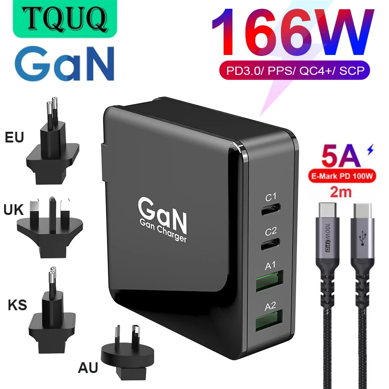 GaN 166W Fast Mobile Phone Charger, USB C PD 100W PPS 45W 20W QC4+ Quick Charge For Xiaomi,Samsung,iPhone,MacBook,Laptop Adapter