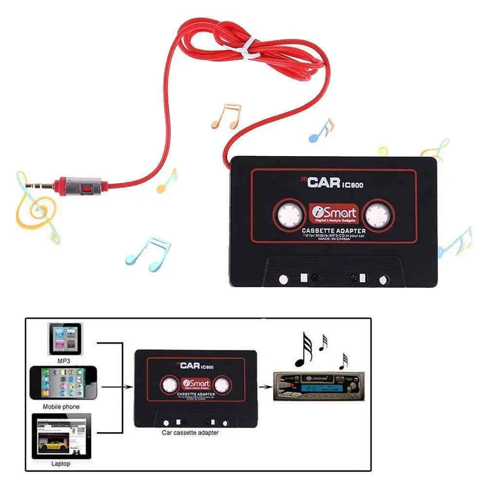 For Mobile Phones, Tablet Computers, Radios Car Jack Auxiliary Audio Tape Cassette Adapter