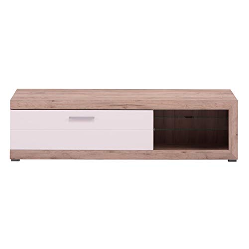 Mobile Porta TV - Annette - 180 cm, Lamina di quercia grigia e lacca bianca
