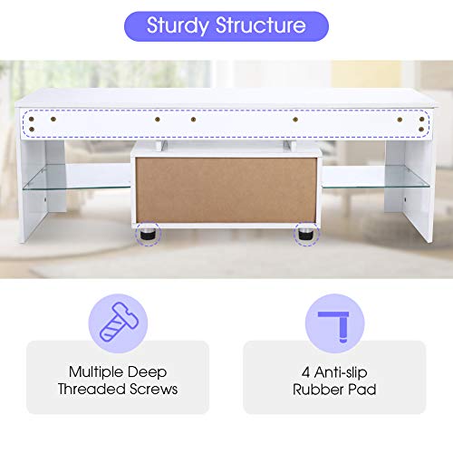 Mobile TV Con LED, Mobile Porta TV Moderno con LED e Cassetto, Supporto da tavolo TV, Mobile TV con telecomando parete attrezzata soggiorno 110V-240V 138x45x14cm