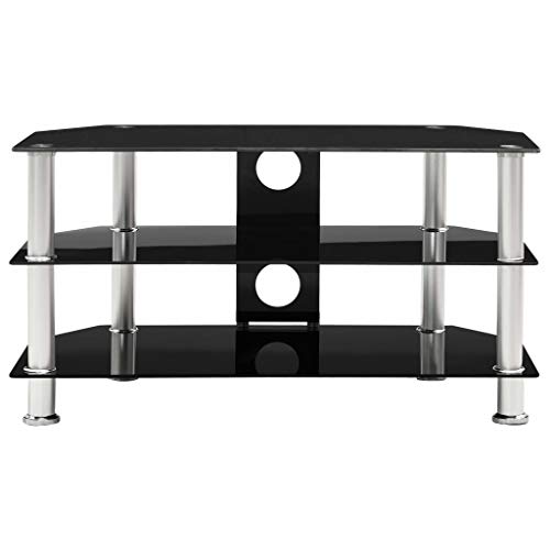 Mobile Porta TV Stand Supporto TV in Vetro Temperato, Struttura in Acciaio e gambe in acciaio inossidabile, con 2 ripiani in basso, 75x40x40 cm, Nero