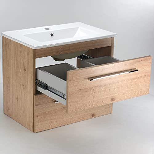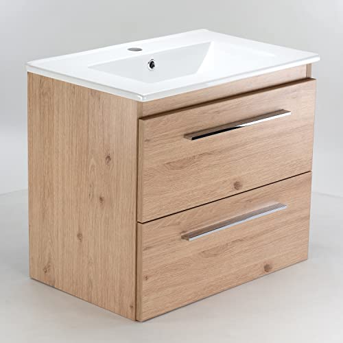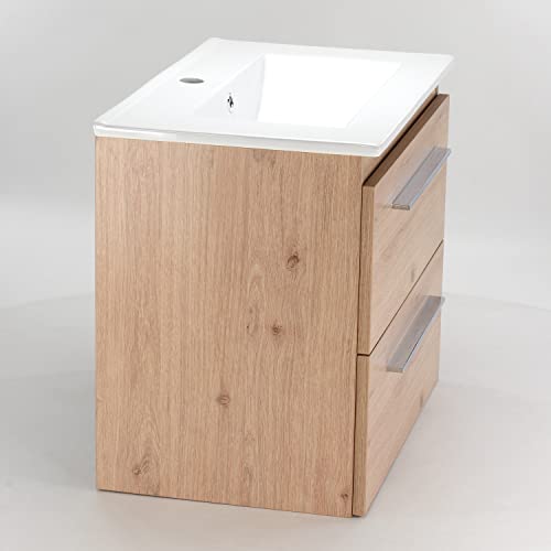 Mobile sotto lavabo modello “Sicilia”, 50 cm/ 60 cm/ 80 cm, con 2 cassetti, lavabo in ceramica, moderno (rovere chiaro, 50 cm)