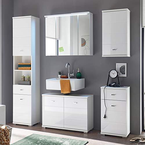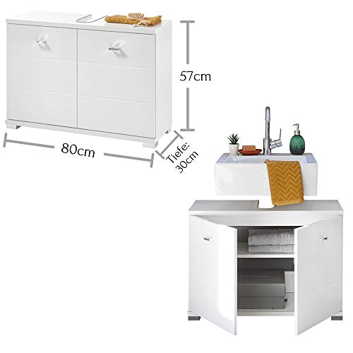 POOL Mobile sottolavabo per bagno in bianco - mobile per lavabo da bagno moderno con molto spazio - 80 x 57 x 30 cm