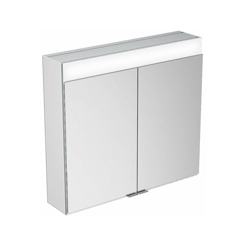 Armadietto a specchio per montaggio a parete colore della luce regolabile in continuo di 2700 Kelvin (bianco caldo) fino a 6500 Kelvin (luce diurna), 2 porte girevoli in cristallo a doppio specchio, Corpo in alluminio anodizzato argento, Fianchi del corpo in vetro laccato bianco sul retro, specchietto retrovisore a parete posteriore Cameriera: Tastiere con sensori tattili capacitivi, funzione di espansione integrata dell',unità di espansione per es. interruttore ambiente Illuminazione: LED 26 Watt (durata > 30.000 ore) dimmerabile all',infinito, illuminante non sostituibile EEK: A+++, A+, A+, A, 26 kWh/1000h 2 prese 3 ripiani in vetro regolabili in altezza Vano portaoggetti con coperchio scorrevole in vetro illuminazione interna Ammortizzatore di arresto porta
