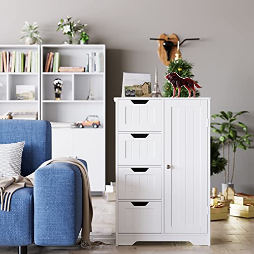 Mobiletti da bagno,Armadietto Autoportante da Bagno, Cassettiera Bianco in Legno con 4 Cassetti e Ripiano Regolabile mobile per Soggiorno, Cucina, Corridoio 30x56x83cm