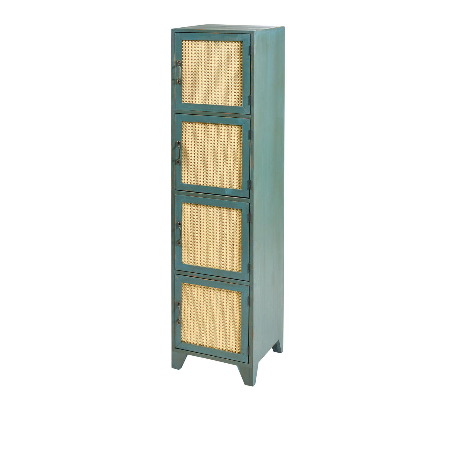 Aggiungi un tocco vintage all'arredamento della tua casa con il mobiletto alto Tonia. Composto da una struttura in abete color verde, è dotato di scomparti chiusi da sportelli con frontale in rattan ottenuto dalla paglia di Vienna. L'effetto anticato lo rende perfetto come libreria da posizionare in ambienti arredati con uno stile rustico o shabby chic. Questo prodotto è frutto di una lavorazione artigianale e rispettosa dell'ambiente, eventuali imperfezioni non sono da considerare difetti di produzione, ma sinonimo di originalità.