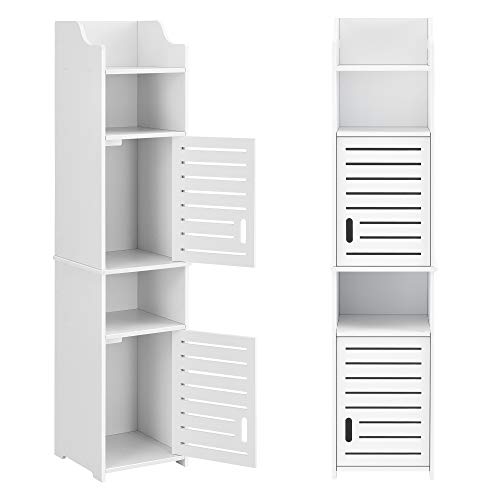 En.casa - Mobiletto da Bagno a Terra 135 x 32 x 32 cm Armadietto a Colonna con 2 Ante 2 Scomparti e Ripiano Ripostiglio da Stoccaggio con Sportelli di Design - Bianco