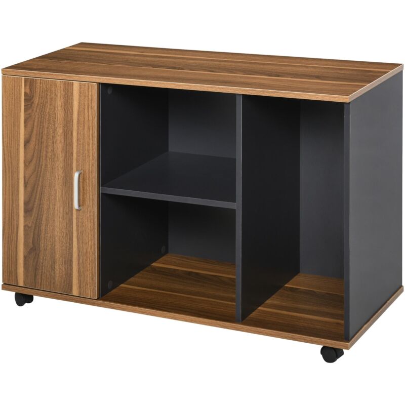 Mobile Mobiletto Portadocumenti 100x40x66 cm con Ruote Noce e Grigio Il mobiletto da ufficio firmato ha uno stile moderno perfetto per ogni ambiente. È dotato di ampi vani aperti e di un armadietto, per offrirti un vasto spazio in cui riporre i documenti e il materiale da ufficio. Grazie alla solida struttura puoi usarlo anche come mobiletto per stampante e per altri piccoli macchinari da ufficio. Il mobile ha 5 ruote per essere spostato facilmente dove preferisci. Durevole e facile da pulire, questo mobiletto multiuso è immancabile in ufficio e a casa. STILE MODERNO: Questo mobiletto multiuso ha uno stile moderno perfetto per l'ufficio, piccoli appartamenti e ambienti dalle dimensioni ridotte. STRUTTURA DUREVOLE: Realizzato con solido particolato E1, questo mobiletto da ufficio è durevole e facile da pulire. Puoi usarlo come mobile per la stampante, lo scanner, il fax o altri macchinari per l'ufficio. AMPIO SPAZIO DI STOCCAGGIO: Ha 3 ampi vani aperti e un armadietto e offre molto
