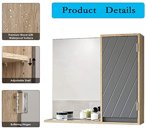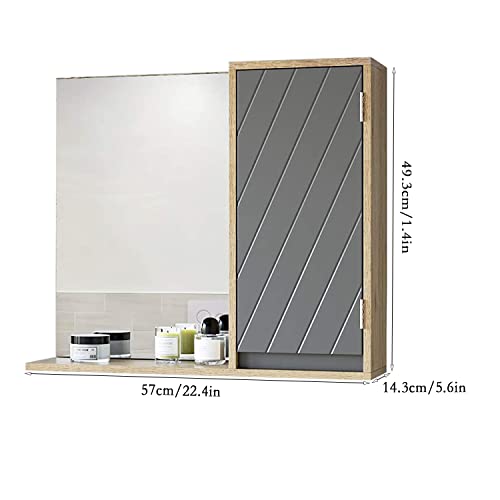 通用 Mobiletto a Specchio per Bagno, Armadietto Specchiera con Ripiani Interiori, Armadietto per Medicinali a Muro, Rovere Chiaro, 57x14.3x49.3cm