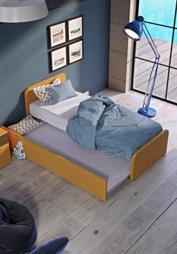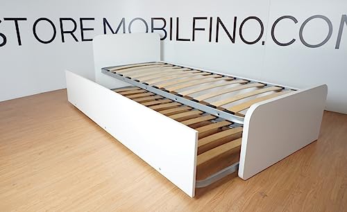 MOBILFINO CAMERETTE Letto singolo con letto estraibile, trasformabile in matrimoniale. Testate personalizzabili, reti in acciaio e doghe in faggio - Testate basse, Salvia