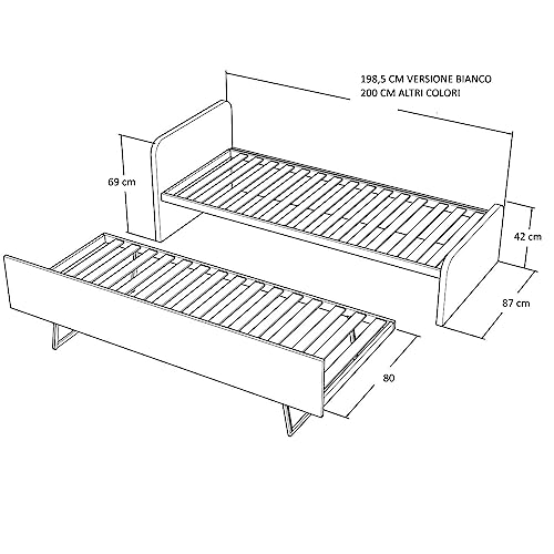 Materassi esclusi. Materasso consigliato 80x190 h.18cm.