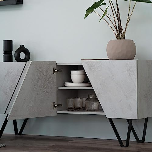 Mobili Fiver, Madia-Buffet 4 ante Emma con gambe nere, Grigio Cemento, Made in Italy