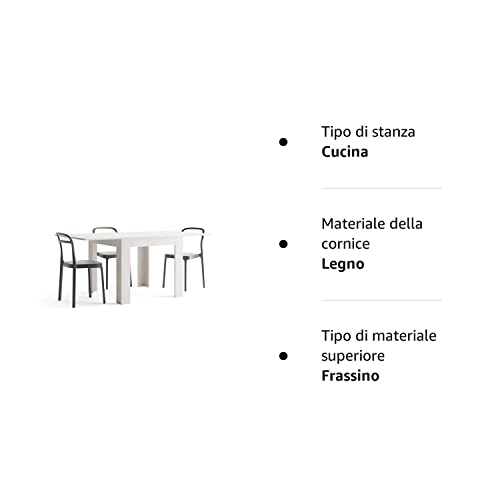 Mobili Fiver, Tavolo Allungabile a libro Eldorado, Bianco Frassino, 90 x 90 x 79 cm, Nobilitato, Made in Italy, disponibile in vari colori